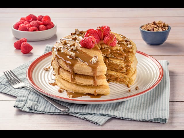 When flipping the pancakes, do so carefully to prevent the NESTLÉ LA LECHERA Dulce de Leche from leaking. You can substitute raspberries with strawberries.